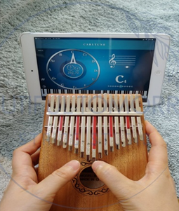 시중에 판매하는 기타나 우쿨렐레에 사용 가능한 집게형 조율기는 플레이트 칼림바에만 사용할 수 있으므로, 핸드폰에 튜닝 애플리케이션을 내려받아 사용하여도 좋다.