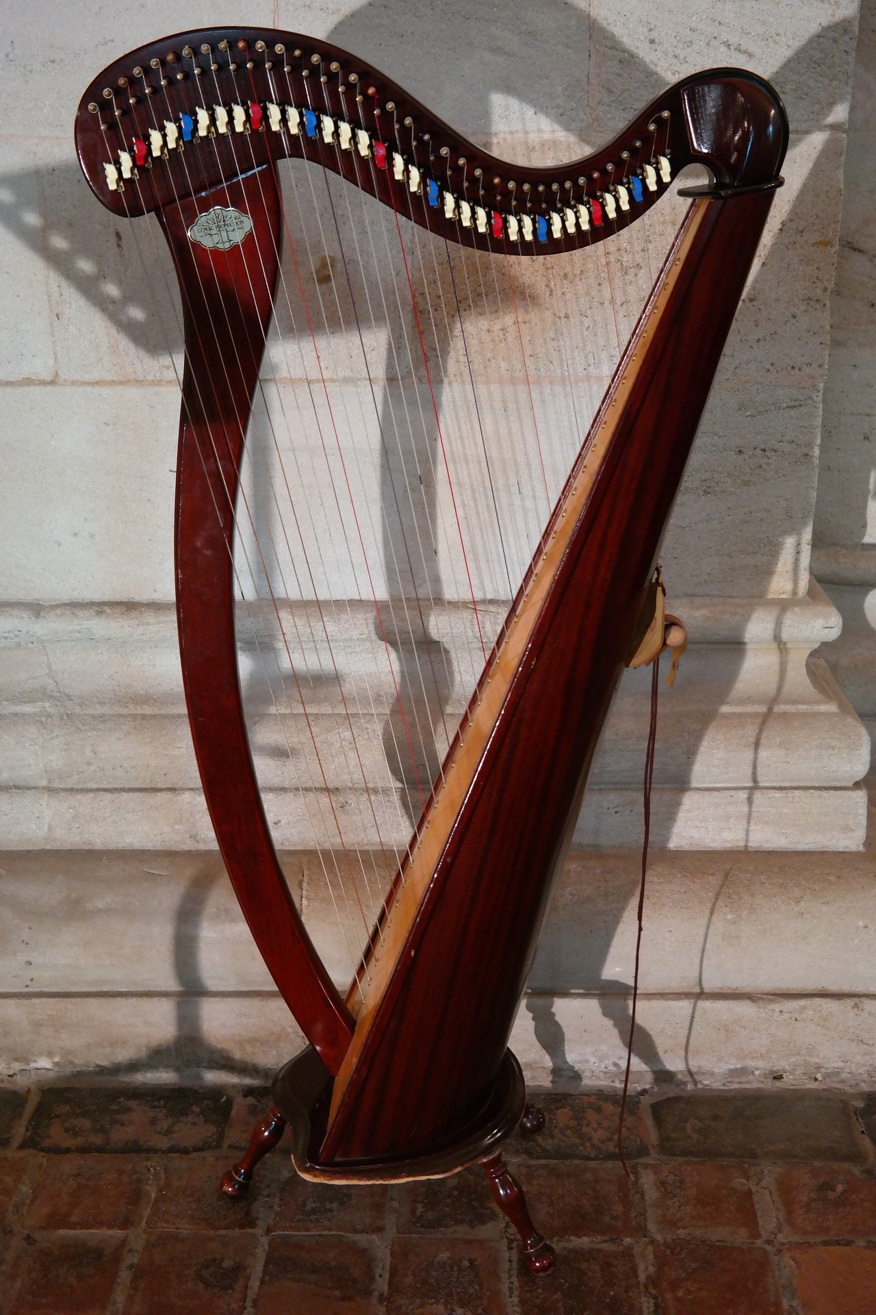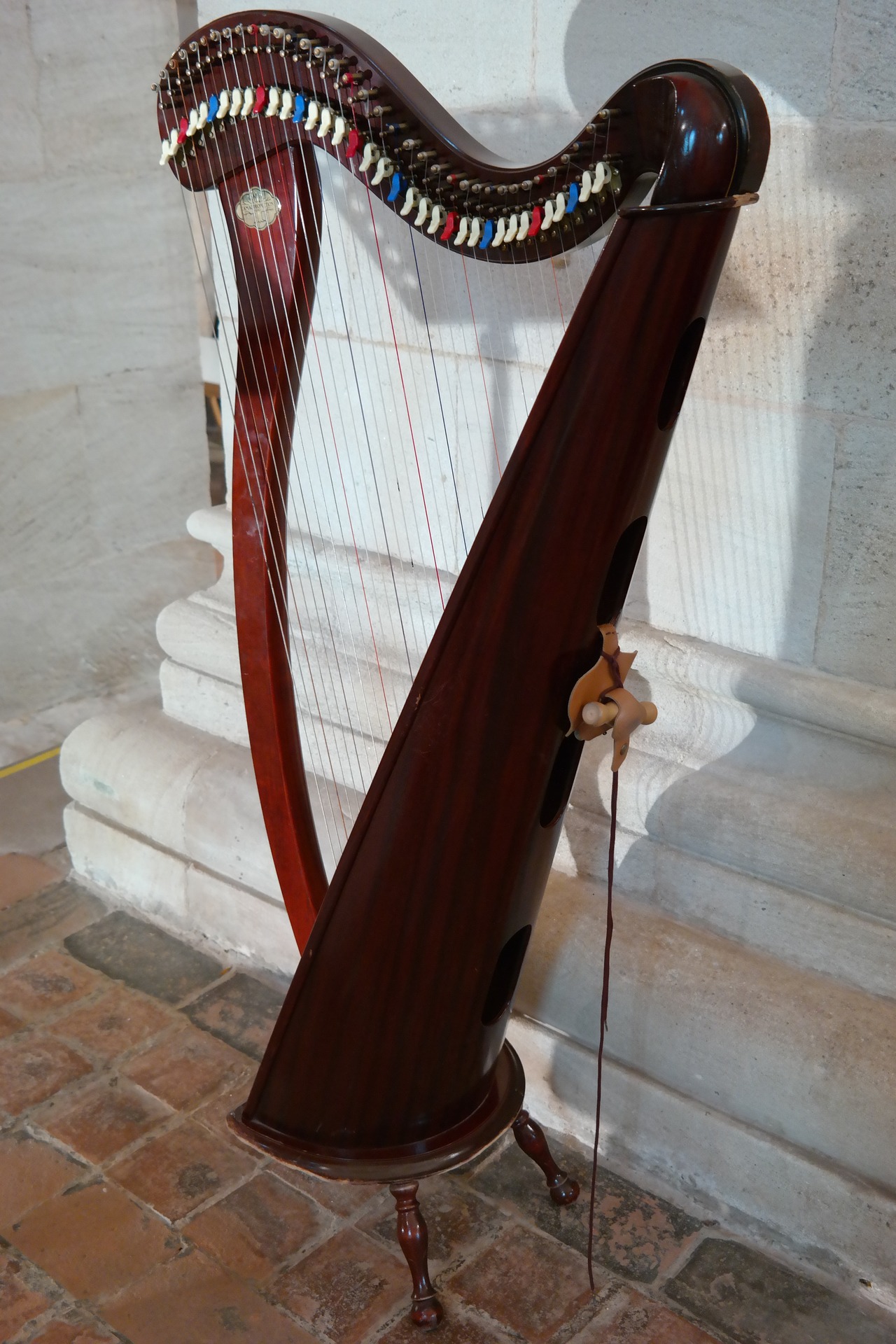 페달 하프(Pedal Harp) 또는 그랜드 하프(Grand harp)라고도 불린다. 현은 양의 곱창이나 고래 힘줄을 이용해 만들기 때문에 켈틱 하프와 비교하면 연주 시 힘이 더 많이 들어간다.