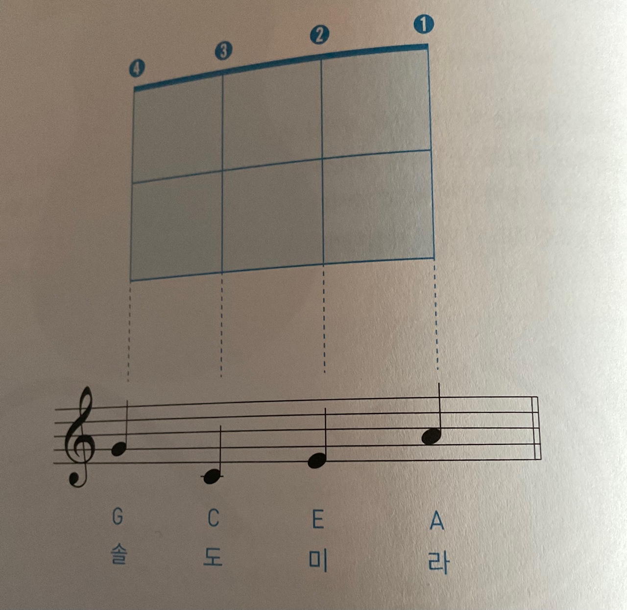 C 코드와 G7 코드가 연결되어 바뀌게 몇 번 더 연습한 후