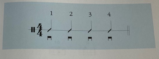 한 박자에 내리는 스트로크 하나씩을 연주하는 연습을 하게 됩니다.